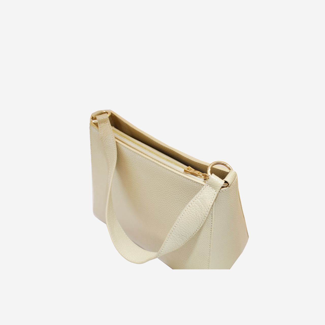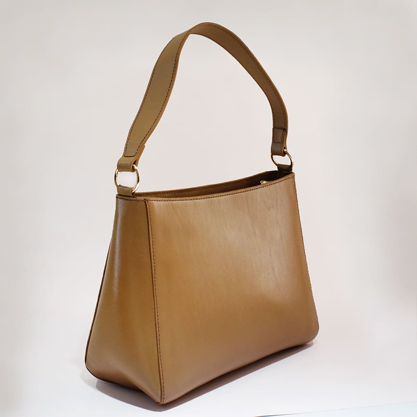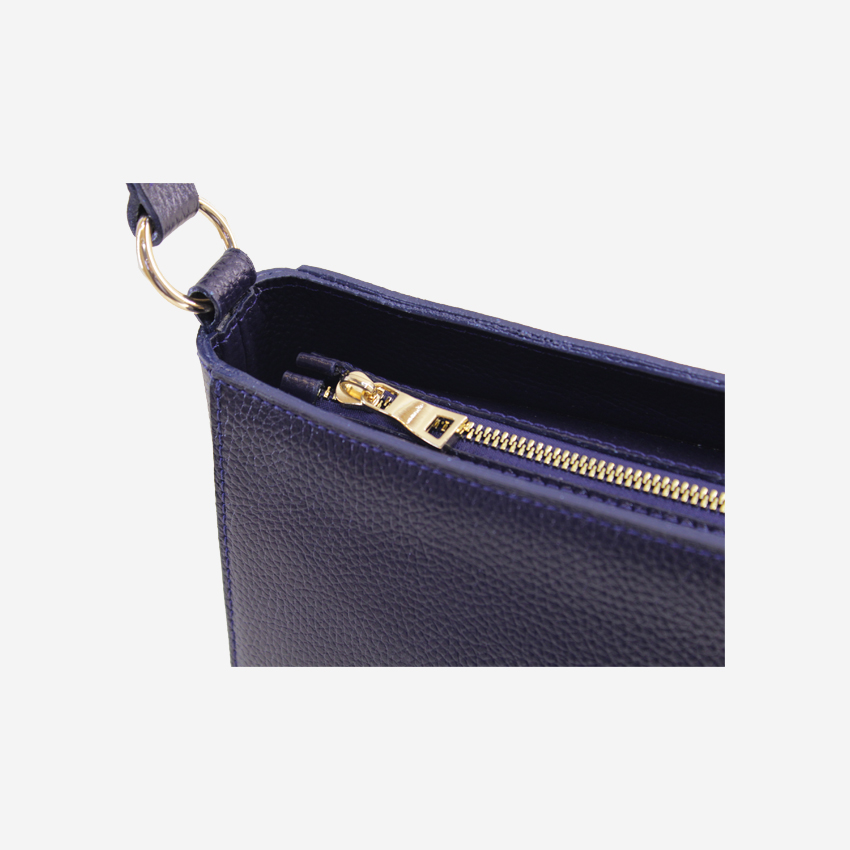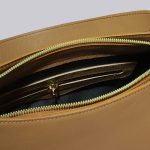 کیف دستی زنانه چرم دارای یک بند چرم بلند دوشی قابل تنظیم هم هست و داخل کیف یک جیب و زیپ کوچک هم هست.